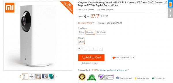 Recevez une réduction sur le Xiaomi Dafang Smart 1080P WiFi IP Camera (-3$) ou en utilisant le code ACEDZSGR. Ce bon plan est valable jusqu'au 15/02.