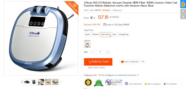 Recevez une réduction sur le XShuai HXS-C3 Robotic Vacuum Cleaner (-13$) ou en utilisant le code OVKCHNPE. Ce bon plan est valable jusqu'au 15/02.