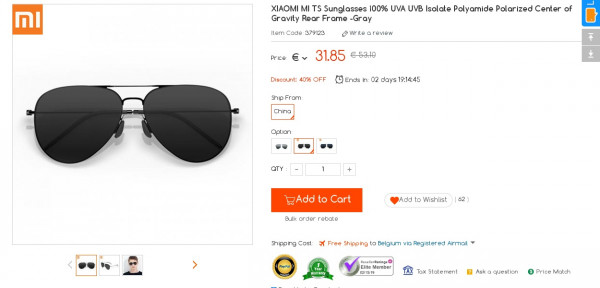 Recevez une réduction sur le MI TS Sunglasses (-4$) ou en utilisant le code GKB044S. Ce bon plan est valable jusqu'au 12/03.