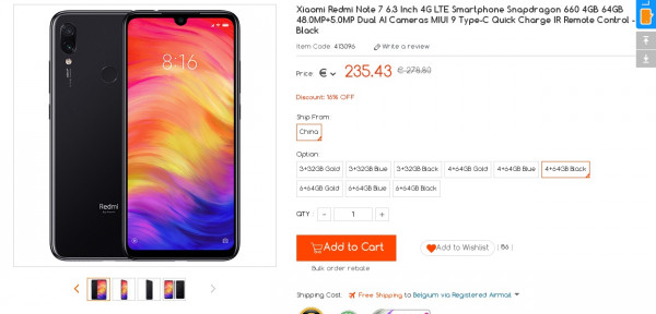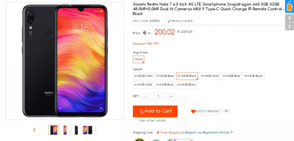 Recevez une réduction sur le Xiaomi Redmi Note 7 3GB + 32GB (-36$) ou en utilisant le code GBQRKJUJ. Ce bon plan est valable jusqu'au 14/03.