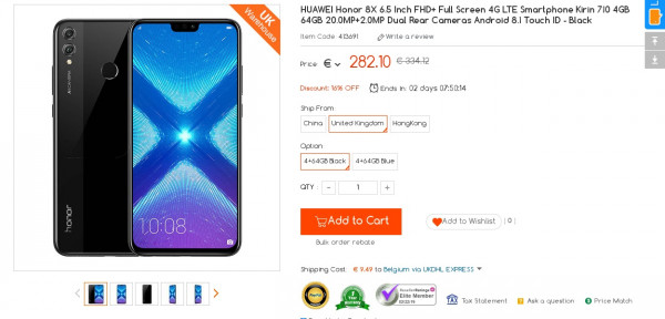 Recevez une réduction sur le HUAWEI Honor 8X 4GB 64GB Smartphone (-10$) ou en utilisant le code SDTSZTLN. Ce bon plan est valable jusqu'au 18/03.