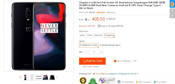 Recevez une réduction sur le OnePlus 6 8GB 256GB Black (-20$) ou en utilisant le code IMGARNEW. Ce bon plan est valable jusqu'au 18/03.