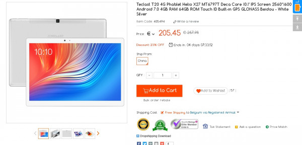 Recevez une réduction sur le Teclast T20 4G Phablet Helio X27 MT6797T (-10$) ou en utilisant le code VEHRBUQL. Ce bon plan est valable jusqu'au 04/04.