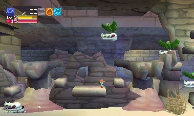 Heureusement, le personnage dispose d'un pistolet, le Polar Star, qui pourra être amélioré durant toute la partie. Sachez cependant que Cave Story 3D bénéficie d'un degré de difficulté très important. En outre, il faudra souvent faire des allers-retours pour ouvrir un passage ou récupérer un objet. Une constante dans les jeux de ce genre, il est vrai. Petite difficulté supplémentaire cependant, le jeu est resté intégralement en anglais, ce qui posera peut être quelques problèmes aux plus jeunes.