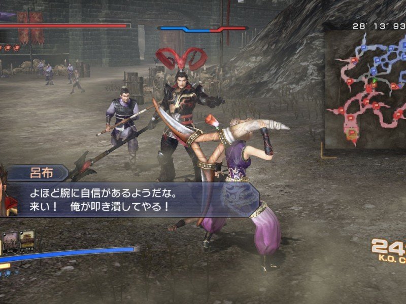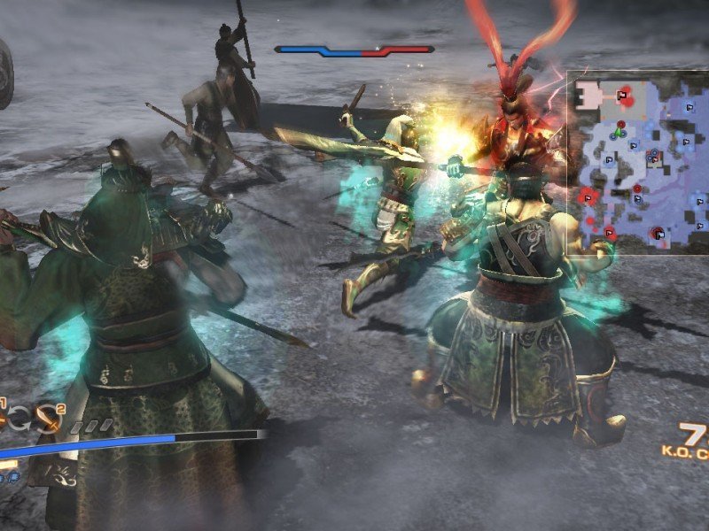 Une fois sur le terrain, DW7 Empires redevient un classique Dynasty Warriors. Chaque mission débute par un rapide briefing, et une carte vous détaillera les plans des lieux et la présence des alliés et des ennemis. Comme à l'accoutumée, le Musou, une sorte d'énergie mystique, répond présent. Pour déclencher un coup spécial il faut faire monter la jauge à l'écran. Le Musou Rage lui permet d'affliger encore plus de dégâts, et il sera conseillé de l'utiliser dans le cas d'objectifs plus compliqués. Un nouveau personnage est d'ailleurs présent sur le terrain, en la personne de Xu Shu. Chacun d'entre eux dispose de deux armes (il est possible de passer de l'une à l'autre à tout moment) et de compétences précises, et au cours de la partie vous découvrirez moult objets et même des armes sur le terrain. A ceci s'ajoute des points d'expériences qui augmentent lors des combats. Il ne faudrait pas oublié que derrière ces ballets incessants se cachent une réelle mission. Un objectif raté, game over. Rageant quand on sait que l'action peut durer plusieurs heures. C'est d'ailleurs pour cela que plusieurs sauvegardes sont possibles en cours de partie, une chance.