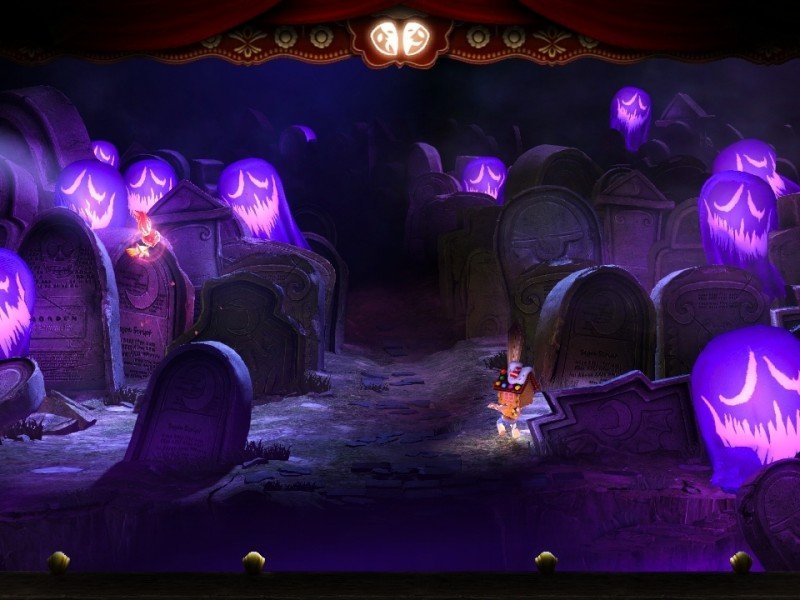 Développé par SCE Japan Studio, Puppeteer est un titre qui se distingue par son aspect graphique, rappelant un spectacle de marionnettes. La Déesse de la Lune a été trahie par son nounours de compagnie : Ce dernier lui a dérobé ses ciseaux magiques, les Calibrus, ainsi que la source de son pouvoir, la Pierre de Lune. Sous son action, la peluche s'est auto-nommée Roi-Ours de la Lune, et a transformé les enfants en marionnettes devant défendre son empire du mal. Vous incarnez Kutaro, un personnage qui a subi une double peine (si on puit dire), car il a également été décapité ! C'est pourtant l'une des caractéristiques du spectacle qui est ici introduite. Votre marionnette pourra régulièrement changer de tête, et une centaine de modèles est disponible dans le jeu. On pourrait croire que ces têtes n'ont qu'un effet esthétique sur Kutaro, puisqu'elles n'apportent aucun pouvoir supplémentaire, mais elles symbolisent en réalité sa santé. Votre avatar peut en porter trois simultanément, et lorsqu'il n'en a plus, il perd une vie. Il conviendra donc de faire certains choix avant de débuter un niveau, notamment pour accéder à certains pans du décor, ce qui obligera très certainement à refaire plusieurs fois les stages pour débloquer tous les secrets.