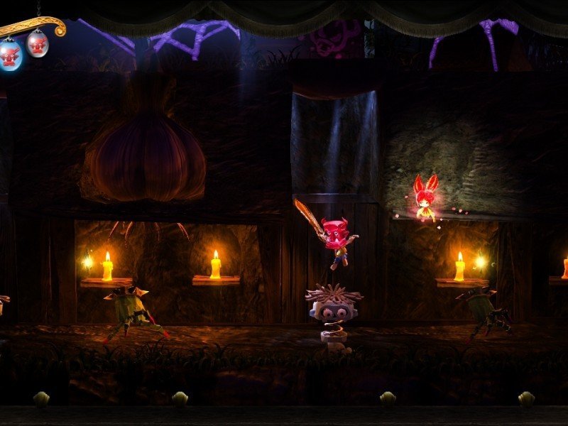 Plate-forme oblige, Puppeteer dispose de quelques actions spéciales. Kutaro pourra ainsi utiliser des ciseaux magiques pour découper certains éléments en tissu, se déplacer plus facilement, ou bien supprimer un obstacle de son chemin. Le grappin permet quant à lui de modifier l'apparence de certains niveaux, le bouclier sert à renvoyer les projectiles ennemis, les bombes à faire le ménage à l'écran, etc. Chaque niveau sera l'occasion de découvrir de nouvelles facultés, ce qui renouvelle assez rapidement le gameplay. En tout, c'est un total de vingt-et-un levels qui répondent présent, de quoi garantir une durée de vie de près de douze heures, sans oublier que quelques histoires supplémentaires ont également été intégrées. Ce conte pour enfants (qui dispose pourtant d'une classification 12 ans et plus) est habilement mis en scène par une voix off très agréable, et quelques chansons rappelant les dessins animés de Disney.