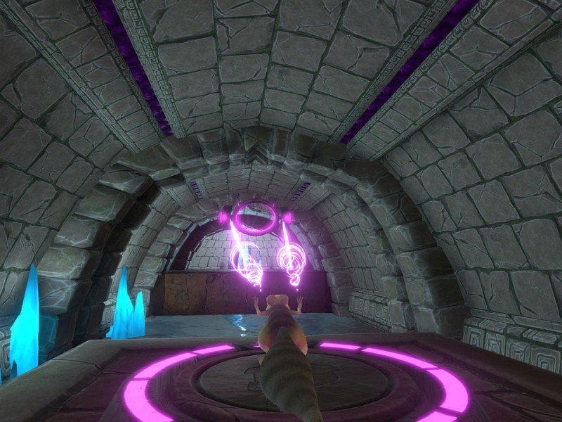 Les jeux de plates-formes 3D basées sur des films familiaux existent depuis longtemps et L'Age de Glace : La folle aventure de Scrat est un voyage nostalgique rappelant les productions qui sévissaient tant sur PS2. Spécialement conçu pour le jeune public, ce jeu vidéo vous permet d'incarner l'écureuil à dents de sabres Scratt, une nouvelle fois à la recherche de son précieux gland. Durant son odyssée, il devra combattre des créatures préhistoriques, survivre à des catastrophes amusantes ou encore résoudre de simples énigmes à travers quatre environnements inspirés de la série de films et accessibles via une zone centrale (hub) baptisée le temple oublié. Le gameplay principal consiste à courir, à sauter, à attaquer et à lancer des pierres, donc c'est très simple. Vous devrez également résoudre des énigmes basiques telles que lancer des pierres sur des boutons dans un ordre spécifique et transporter des cœurs de puissance jusqu'aux terminaux afin d'ouvrir les portes et de faire bouger les plates-formes flottantes. Au fur et à mesure que vous progresserez dans les niveaux, vous ramasserez des tonnes d'éclats éparpillés, contenus dans des caisses et lâchés par les ennemis. Après en avoir atteint un certain seuil, votre santé maximale augmente. Dans cet esprit, l'échec n'est pas très punissant puisque vous recommencez simplement au point de contrôle précédent.