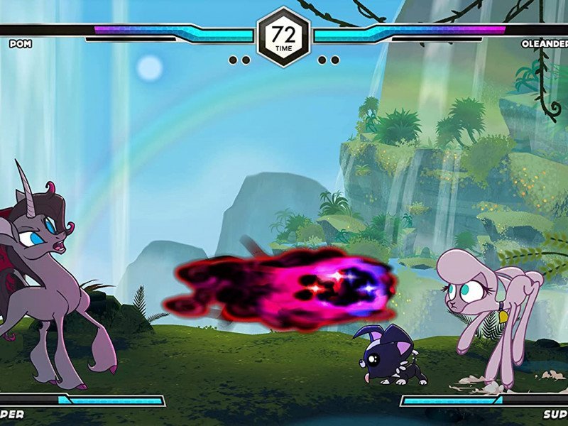 L'univers de la culture POP regorge de franchises aux fandoms talentueux, capables de produire des produits non officiels avec passion et inventivité. My Little Pony (Mon Petit Poney) est précisément l'un de ces phénomènes qui, grâce au célèbre reboot de 2010, a suscité un fort attrait et un intérêt à l'échelle mondiale. Un groupe de fans s'est donc réuni pour former Mane6 et, après presque 10 ans de travail et un malentendu de la part de Hasbro, ils ont produit le titre analysé dans cette revue : Them's Fightin Herds. La particularité du titre est, contrairement aux autres représentants du genre, la présence d'un mode histoire. Le récit est le suivant : dans un monde paisible peuplé d'animaux qui parlent, des prédateurs menaçants menacent de revenir après avoir été enfermés dans une dimension parallèle. Le seul moyen de sauver la journée est de trouver des clés légendaires, une tâche qui enverra les champions choisis parmi les nombreux peuples du monde à l'aventure. Dès l'incipit, il est évident que l'histoire créée par Lauren Faust, qui n'est autre que l'auteur du reboot de My Little Pony mentionné plus haut, ne se prend pas du tout au sérieux. Cette approche est encore renforcée par la présence de personnages à l'esprit vif et à la caractérisation si simple qu'elle en devient stéréotypée. Cependant, le scénario réussit à exploiter au maximum son potentiel grâce à des dialogues drôles et jamais vraiment prévisibles. Le joueur se sent constamment intrigué en explorant l'univers du jeu et en discutant avec les différents PNJ, tout cela pour découvrir la prochaine idée étrange imaginée par les développeurs. En ce sens, il faut noter une localisation écrite en plusieurs langues, dont le français, alors que le doublage est uniquement en anglais, avec même la présence de doubleurs américains assez connus.