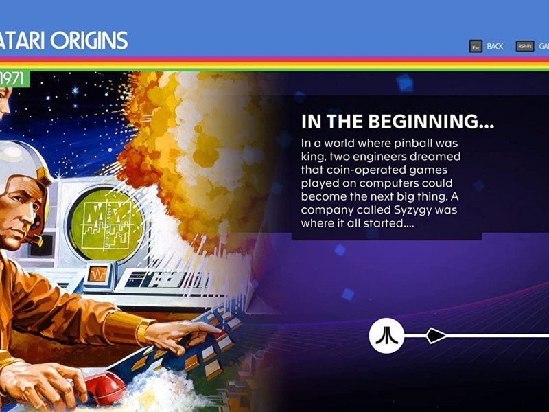 Développée par Digital Eclipse et publiée par le vétéran Atari, la collection Atari 50 : The Anniversary Celebration ressemble plus à une encyclopédie interactive qu'à un jeu proprement dit et retrace chaque moment de cette période turbulente qui comprend l'essor, la chute et l'essor de ce que nous connaissons aujourd'hui comme l'industrie du jeu vidéo. Atari 50 : The Anniversary Celebration nous emmène en voyage à travers 50 ans d'histoire du jeu vidéo. Dans le jeu, nous disposons de frises chronologiques interactives qui nous présentent des histoires, des anecdotes, des artefacts numériques tels que des photos, des pages de magazines, des manuels, des prospectus et beaucoup, beaucoup de contenu vidéo tel que des interviews et des documentaires dans une expérience cohérente où, en plus de regarder, vous pouvez jouer et interagir. La première partie de l'histoire nous présente l'origine des arcades, en 1971, dans un monde dominé par les flippers, jusqu'à ce que deux ingénieurs, Ted Dabney et Nolan Bushnel, créent une société appelée Syzygy co, créateur de la première arcade qui s'appelait Computer Space, un jeu qui consistait essentiellement en un vaisseau spatial qui devait tirer et s'échapper des projectiles ennemis dans un scénario de fond noir avec des pixels blancs, et qui serait plus tard nommé comme il est connu dans le monde entier aujourd'hui, Atari.
