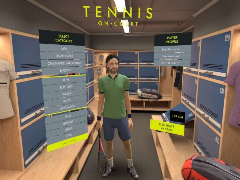Une fois surmonté ce petit obstacle (qui est facultatif), nécessaire pour ne pas arriver au dépourvu sur le terrain de jeu, nous serons accueillis par trois modes distincts : simple, tournoi et en ligne. Dans le premier cas, il sera possible d'organiser un match contre un joueur contrôlé par l'IA, en déterminant sa durée et sa difficulté. La deuxième option représente une sorte de mode histoire sommaire, dans lequel nous serons appelés à affronter 4 tournois de difficulté croissante, chacun divisé en 5 matchs dans lesquels nous devrons gagner 3 sets. Le dernier mode, comme prévu, nous catapultera dans le réseau, où nous pourrons défier des amis via invitation, ou participer à des matchs amicaux et classifiés via matchmaking. Ce qui est intéressant, du point de vue multijoueur, c'est la possibilité de créer des matchs simples et doubles, même s'il faut l'avouer il nous a été impossible de tout tester, compte tenu de l'absence d'autres joueurs : espérons que la situation s'améliorera dans les prochains jours, sinon l'avenir ne s'annonce certainement pas rose pour Tennis On-Court. Oui, car tout ce qui va au-delà du online s'est avéré plutôt fade en termes d'offre : si on ne peut vraiment pas demander grand-chose aux simples affrontements en 1 contre 1 contre des bots, le mode Tournoi s'est révélé très décevant, car il n'en propose pas vraiment d'attraction une fois les 4 mini circuits réalisés. On ne comprend pas la décision de ne pas inclure une vraie carrière, dans laquelle nous aurions peut-être pu donner vie à notre alter ego, pour tenter de gravir le classement mondial, en accumulant des crédits pour acheter des kits et des personnalisations pendant la construction. Rien de tout cela n'est présent, au contraire, nous avons préféré introduire un éditeur de base pour notre personnage, avec tous les équipements et vêtements déjà disponibles (entre autres en très petit nombre), annulant également l'envie de jouer simplement pour débloquer progressivement des objets plus intéressants. On peut laisser de côté également la présence du mode spectateur qui, si nous avions eu la chance de croiser d'autres joueurs, nous aurait permis d'observer un match en cours en tant que public.