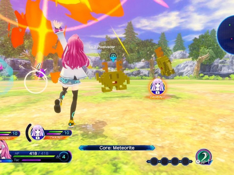 Le gameplay de l'œuvre de Compile Heart est principalement divisé en deux sections, le style visual novel et le JRPG d'action. Le premier est un aspect très important, car c'est probablement la partie où l'on passe le plus d'heures dans l'aventure. Le seul objectif est d'assister aux dialogues, dans un cadre typique des visual novels, tant au niveau de l'esthétique que des contrôles. En ce sens, le soin apporté à la personnalisation complète est évident, depuis les commandes qui varient la vitesse des mots jusqu'à leur défilement automatique. Une caractéristique à souligner pour notre marché est que, au moins au moment de l'évaluation, Neptunia : Sisters VS Sisters ne présente qu'une localisation en anglais. Le vocabulaire utilisé n'est pas du tout complexe, il est donc compréhensible même pour ceux qui ne maîtrisent pas la langue anglaise. Le doublage est également disponible en japonais et en anglais. Un choix important, non pas tant pour la qualité du travail, mais parce que dans ce dernier cas, la plupart des cutscenes ne sont pas doublées. Une mention honorable pour les scènes secondaires. Des sections qui ne sont pas liées à l'intrigue principale, mais où la comédie parvient à s'exprimer au mieux grâce à la métanarration. Nous ne voulons pas spoiler ce que les scénaristes ont réussi à inventer, mais les habitués du marché de la pop culture se plairont à reconnaître les multiples commentaires et références. Pour le reste, Neptunia Sisters VS Sisters se présente comme un JRPG d'action structuré en donjons. Le joueur prend le contrôle d'un groupe de trois personnages, avec pour objectif d'atteindre un certain point dans le niveau. L'exploration de base est pratiquement inchangée par rapport au reste de la série, avec des environnements de taille petite à moyenne peuplés de monstres et de trésors. Il est possible que Nepgear et ses amis rencontrent quelques énigmes ou interactions environnementales, mais elles sont si simples qu'elles en deviennent superflues.