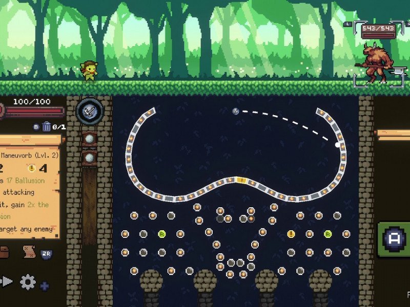 Red Nexus Games a initialement publié Peglin sur Steam en accès anticipé en 2022. Depuis lors, la société a publié plusieurs mises à jour et le jeu est officiellement sorti. Cette année, c'est au tour de la Nintendo Switch. Peglin n'a aucune histoire. Vous êtes un gobelin qui bat ses ennemis via le pachinko, une sorte de flipper japonais. C'est tout ce que l'on peut dire à ce sujet, c'est une trame qui n'a aucun sens. Ce n’est pas un défaut en soi, le jeu sait que ce n’est pas important et ne perd pas de temps là-dessus. Peglin est un jeu roguelike et cela signifie que beaucoup de choses sont aléatoires. Cependant, je n'ai jamais joué à un roguelike aussi aléatoire que celui-ci. Dans des jeux comme The Binding of Isaac, Slay the Spire et Hades, il s'agit principalement d'une combinaison d'apprentissage de combinaisons fortes et d'amélioration de vos compétences. Dans Peglin, il s'agit uniquement de combiner des mises à niveau. Tout ce que vous avez à faire est de viser et de lancer. Cela présente des avantages et des inconvénients. C'est très facile à maîtriser et peu importe que vous soyez bon en jeux ou non. Mais l'inconvénient est que le jeu n'est pas très profond. En fait, Peglin n'est pas très étendu non plus. Le nombre de mises à niveau et d’événements aléatoires peut presque se compter sur deux mains. Au bout de trois heures, nous avions presque tout vu. Les améliorations sont très belles, de cette façon, vous devez recharger vos balles à chaque fois que vous avez lancé toutes les balles. Maintenant, nous avions une mise à niveau qui nous faisait infliger des dégâts à tous les ennemis à chaque fois que nous devions répéter et une autre qui nous rendait immortel lors du rechargement. Pendant ce run, nous avons également retiré toutes nous balles, donc nous sommes restés là pendant que tout autour de nous mourait. Des moments comme celui-là nous font voir beaucoup de potentiel dans ce titre.