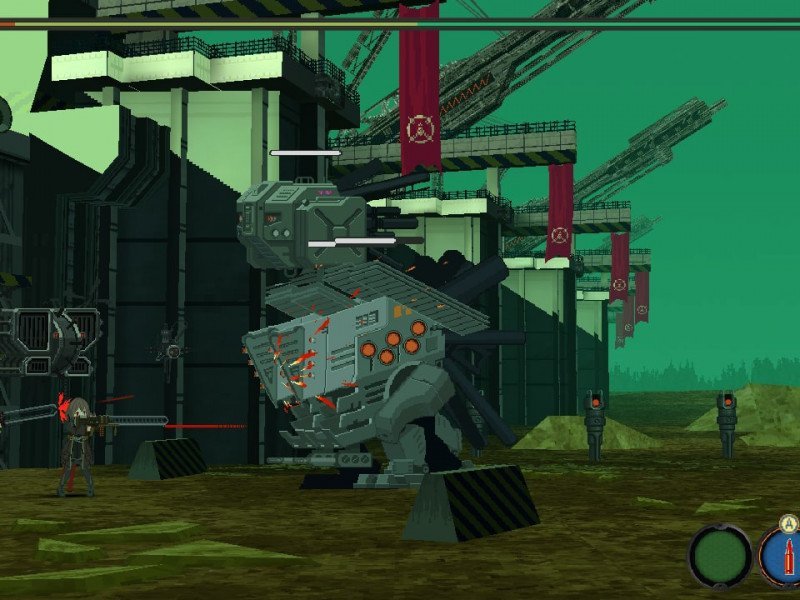 L'histoire de Snezhinka cache d'agréables surprises et, dans sa simplicité, révèle des rebondissements cruels et des histoires très intéressantes à démêler et qui vous pousseront à jouer et rejouer plusieurs fois le titre. C'est parce qu'il y a une fin pour chacun des co-protagonistes plus une fin « solo » en plus des fins « réelles » et « bonus ». Ces deux derniers sont liés à une autre branche du jeu (avec des zones et des boss différents) et leur obtention est liée à notre degré d'efficacité sur le terrain (éventuels KO et/ou dégâts obtenus sur l'objectif à défendre). Dans l’ensemble, l’intrigue de science-fiction dystopique de Snezhinka nous a agréablement surpris par son immédiateté et ses nuances. Côté gameplay, Snezhinka est un jeu de tir à défilement latéral en 2,5D avec des objectifs de défense de tour et un système de gestion de l'argent. Dans le détail, nous serons appelés à prendre le terrain 100 fois (donc cent tours qui dans le titre équivalent à 100 jours de guerre) dans une série d'arènes qui changeront au fur et à mesure de notre progression dans l'aventure. Nous aurons le contrôle de Snezhinka et pourrons la déplacer le long d'un chemin linéaire extrêmement court. La brièveté de l'espace de manœuvre et la quasi-absence de tout type d'exploration sont cohérentes avec le type de jeu. Nous devons défendre un objectif (qui peut être statique mais aussi mobile) et pour cela nous devrons gérer notre équipement de la meilleure façon possible. Après chaque combat, en effet, nous recevrons une récompense. Or, cette compensation sera réduite par un système fiscal variable qui compliquera notre existence. La compensation défiscalisée est donc une série de calculs simples obtenus à partir de nos actions sur le terrain, tant positives que négatives. Pour faire simple, si la cible à défendre subit beaucoup de dégâts, en plus des impôts, nous devrons également contribuer aux réparations et donc nous n'obtiendrons rien, vice versa... un combat parfait nous garantira de collecter quelques pièces. Ces pièces peuvent être immédiatement dépensées pour acheter l'une des cartes disponibles au hasard.