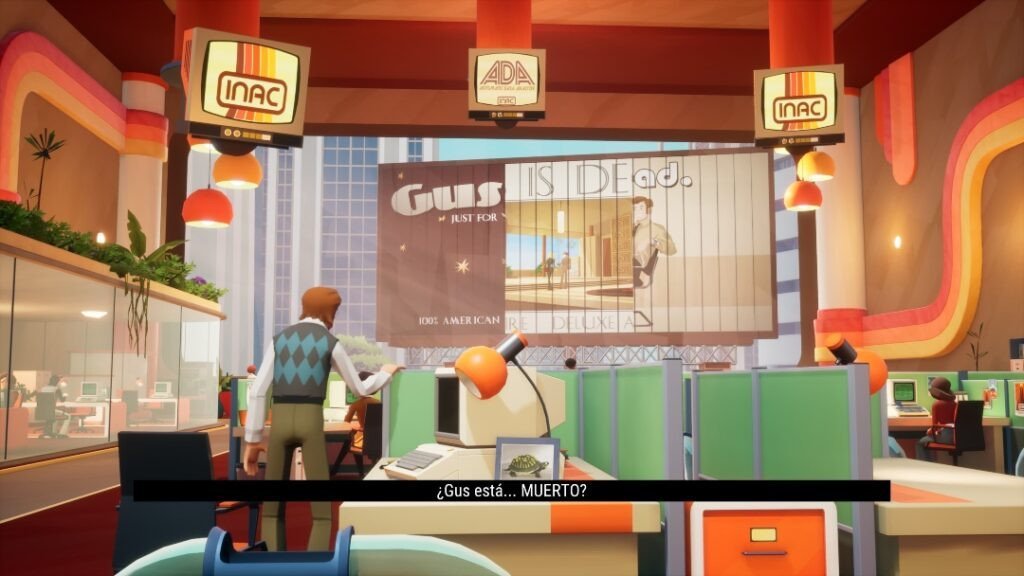 Initialement sorti en novembre 2023 sur PC, American Arcadia arrive enfin sur consoles. Il ne sert à rien de tourner autour du pot : l'intrigue générale du jeu reprend directement certains aspects présents dans le très réussi The Truman Show de Jim Carrey , mais cela ne signifie pas que celui qui a créé le titre n'a pas su en tirer le meilleur parti. Nous jouerons le rôle de Trevor Hills , un garçon d'une vingtaine d'années qui mène une vie très normale, linéaire et monotone où ce qui régit son existence est principalement le temps passé au travail. Le jeu (du moins en apparence) se déroule dans les années 70, où notre protagoniste travaille pour une mégacorporation en tant qu'employé de bureau dont le travail consiste à envoyer quotidiennement des fichiers à un superordinateur. Est-ce que tout ce qu’il fait a du sens ? Absolument pas , car grâce à l'aide d'une voix qui apparaîtra dans chaque composant électronique autour de nous, nous découvrirons bientôt que le monde entier dans lequel Trevor a vécu jusqu'à présent est un mensonge . En fait, et c'est une référence au film de Jim Carrey, la ville d' Arcadia où vit et connaît le protagoniste n'est qu'un gigantesque plateau de tournage filmé par d'innombrables caméras cachées 24h/24 et 7j/7, afin de filmer la vie de chaque citoyen et de la diffuser ensuite à la télévision. Malheureusement, les audiences du programme diminuent lentement et les producteurs, afin de réduire les coûts, ont décidé d'éliminer tous les citoyens qui ne génèrent pas suffisamment de visites (nous en faisons évidemment partie). Notre objectif est de nous échapper du plateau avec l'aide d' Angela , la voix qui nous a guidé au début et dont nous découvrirons bientôt qu'elle est une hackeuse qui travaille dans les studios des producteurs de la série télévisée.