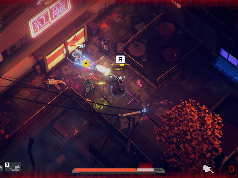 Les combats se déroulent dans des zones fermées ou des couloirs, avec la particularité qu'une fois le combat commencé, la salle sera fermée et nous ne pourrons pas revenir nous mettre à couvert. Cybercorp cherche constamment à nous forcer à une confrontation frénétique et à exploiter les capacités de nos Synths et nos propres capacités. Au cours de la mission, différentes tâches nous seront confiées, soit trouver des cibles, soit les escorter jusqu'à la zone de sécurité, tout en étant bien sûr attaqués par différents types d'unités allant des membres de gangs, des assassins à d'autres agents d'entreprise. Le titre propose un mode coopératif pouvant accueillir jusqu'à 3 personnages, et ce serait la cerise sur le gâteau. Étant un jeu avec des caractéristiques de tir isométrique, y jouer avec des coéquipiers est plus que nécessaire. Les ennemis sont quelque peu récurrents, mais même ainsi, ce qui pose les défis se trouve dans les scénarios, car beaucoup d'entre eux représentent des pièges mortels en raison de la facilité de tendre des embuscades dans les ruelles et autres recoins d' Omni-City . Concernant la localisation, il s'agit d'un titre qui prend en charge désormais le français dans sa version 1.0, ce qui n'était pas le cas dans l'Accès Anticipé. Quoiqu'il en soit, les textes ne sont pas très nombreux et le fonctionnement est très compréhensible grâce à de courtes conversations et à son accent sur l'action.
