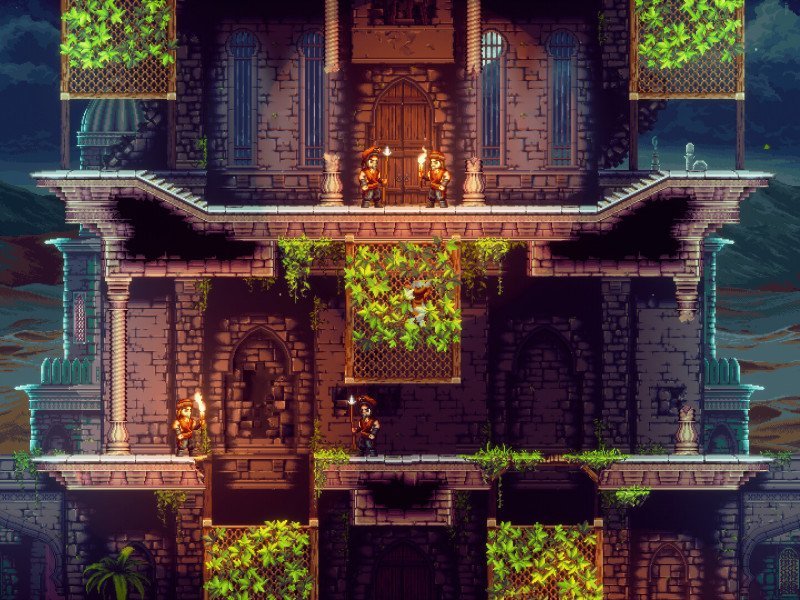The Siege and the Sandfox est un Metroidvania en deux dimensions qui fait un clin d'œil astucieux au Prince of Persia original (les originaux), ajoutant une touche de furtivité qui change les règles du jeu Le titre de Cardboard est fait de peu de mots (la seule voix est celle du narrateur, à vrai dire), et de beaucoup d'imagination. Le Renard , le surnom que la ville a donné au protagoniste de cette histoire, est une sorte de symbole pour tous étant donné sa force et sa ténacité, mais les choses changent rapidement. Dès les premières minutes du jeu, le Renard est accueilli comme un héros, adoré par tous les habitants. Peu de temps après, un événement change tout dans sa vie. Le protagoniste assiste au meurtre du roi , sans pouvoir intervenir à temps. Les autorités, confrontées à la situation et à ce qui semble être une trahison flagrante de la part de l'un des hommes les plus fiables de la cour, décident de punir le Renard, en le poignardant et en le jetant dans les bidonvilles les plus profonds de la ville, où règnent l'obscurité et la pauvreté. Cependant, il n'est pas si facile de se débarrasser du Renard, qui, bien que privé de toutes ses capacités, qui peuvent être testées dans le court prologue, doit maintenant se lancer à la recherche de la vengeance et de ceux qui l'ont piégé. Des prémisses qui rappellent beaucoup à la fois Dishonored , le spectaculaire jeu d'infiltration d'Arkane, et le susmentionné The Lost Crown, et ce n'est peut-être pas une coïncidence. The Siege and the Strandfox a été présenté par ses auteurs comme un stealthvania, un curieux hybride entre le genre Metroidvania et celui qui a fait la grandeur de l'histoire de Corvo à Dunwall, ne serait-ce qu'en proposant une série de mécaniques différentes du jeu désormais traditionnel de ce genre. Naviguer dans le labyrinthe des prisons, des bidonvilles et des catacombes, pour échapper aux gardes royaux et regagner son honneur, le ramènera bientôt à la surface, ne comptant que sur ses compétences furtives.