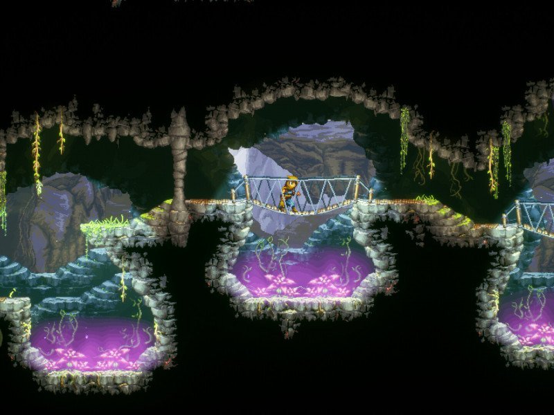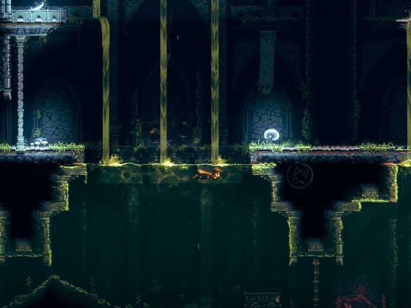 Heureusement, étant donné l'importance que Cardboard a voulu consacrer à l'exploration, la phase exploratoire est soutenue par un level design très intéressant, pas seulement visuellement. Il y a des sections qui vous obligent à utiliser des plates-formes, à glisser pour vous échapper, à grimper, à vous cacher. L’environnement environnant est habilement exploité – et c’est nécessaire, en effet. La furtivité est en effet essentielle . Il ne sert à rien d'affronter les gardes de front, d'autant plus qu'un simple coup suffit à se retrouver au sol et à tout recommencer depuis des points de contrôle même éloignés du point où vous êtes arrivé. Le jeu est conçu pour tout sauf le combat en face à face. Le jeu explique très bien dès les premières étapes du jeu ce qui peut être utilisé pour exploiter l'environnement. Le sprite Fox, par exemple, change intelligemment lorsque le protagoniste est caché de la lumière, et nous pouvons donc même éteindre certaines de ces sources de lumière pour en profiter. Pour faciliter votre fuite, il existe également des vases, des tonneaux ou d'autres objets utiles pour se cacher. Contrairement à de nombreux autres Metroidvanias, dans The Siege and the Sandfox, la pensée logique l'emporte de loin sur l'approche directe, qui dans de nombreux cas est complètement inutile - et le joueur le remarque très vite. La véritable difficulté réside dans l’extrême attention que Cardboard a portée à cet aspect, sans toutefois en gommer les défauts. Par exemple, les mouvements doivent être ciblés, presque calibrés au millimètre. Tout doit être calculé dans le positionnement, comme lorsque le protagoniste doit s'accrocher à un rebord ou appuyer sur un interrupteur sur le mur. Le résultat est une expérience stimulante, oui, avec de nombreux essais et erreurs qui se succèdent, même si certains de ces processus, liés notamment aux phases furtives, ne sont pas suffisamment structurés en raison de limitations techniques.