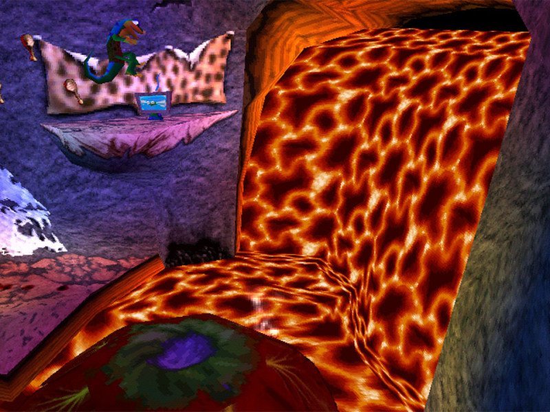 Une fois de plus, ce qui ressort de Gex, c'est son côté parodique . Des blagues volées au protagoniste aux éléments visuels qui crient les références à plein volume. L'univers du dessin animé à lui seul est une sorte de méga-parodie des Looney Tunes, des carottes à collectionner aux éviers tombant du ciel comme les enclumes du coyote le plus malchanceux de tous les temps. Et tout cela fonctionne encore aujourd'hui. En fait, c'est encore mieux avec en prime une nostalgie collective qui traverse tous les genres de l'époque et offre une sorte de coupe transversale mondiale de la télévision des années 70 à nos jours. Les voyages de Gex deviennent une sorte de voyage historique pour le joueur, littéralement catapulté dans le passé, profitant de revivre des expériences et des moments liés à d'autres marques, racontés avec humour et sans vulgarité par le gentil gecko. Si le deuxième volet est le plus révolutionnaire et mémorable des trois, en partie grâce à l'évolution évidente du premier, le troisième, Gex 3 : Deep Cover Gecko datant de 1999, est le plus « conservateur » et le plus solide, ainsi que le plus mature et encore plus humoristique (il présente notamment une Marlice Andrada bien réelle). Une sorte de deuxième volet amélioré, avec quelques améliorations de gameplay, mais moins audacieux et innovant.
