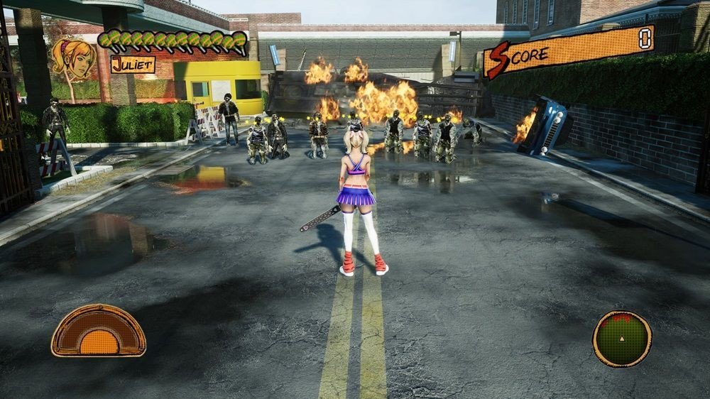 Le jeu est divisé en sept niveaux distincts de durée variable. Certains niveaux ont des gimmicks spécifiques, comme le basket-ball ou le baseball, mais l'objectif principal reste le même : éliminer tous les zombies qui se dressent sur votre chemin tout en sauvant les survivants. Juliet dispose de trois attaques de base assignées à trois boutons différents et il est possible de les combiner pour créer différents combos. L'attaque pompon est plus rapide, mais elle n'inflige pas assez de dégâts pour achever les zombies. En revanche, l'attaque tronçonneuse est mortelle, mais son lag laisse les défenses de Juliet largement ouvertes. Vous devez donc éviter soigneusement les ennemis en sautant par-dessus pour éviter d'être encerclé par les zombies, ce qui rendrait ses déplacements difficiles. La tête de Nick n'est pas seulement un objet exposé sur la taille de Juliette, car plus tard, Juliette peut utiliser la tête de Nick comme une arme en effectuant des mouvements spéciaux tels que Nick Toss, Nick Shoot et Nick Popper. Si vous parvenez à tuer trois zombies ou plus en une seule attaque, une scène au ralenti intitulée « Chasse aux étincelles » apparaîtra . Vous recevrez des pièces d'or et de platine, que vous pourrez ensuite utiliser pour acheter des objets dans la boutique Chop2Shop.com . Dans cette boutique, vous pourrez ensuite débloquer des combos, des costumes, de la musique et même augmenter définitivement les attributs de Juliet, comme sa barre de santé. Les Quick Time Events (QTE) sont également toujours présents. On se souvient encore de leur agacement dans la version originale, car des actions simples comme sauter par-dessus des objets nécessitaient des QTE. Heureusement, les développeurs ont ajouté une nouvelle fonctionnalité permettant d'exécuter automatiquement les QTE, éliminant ainsi le besoin d'appuyer sur une série de boutons apparaissant à l'écran.