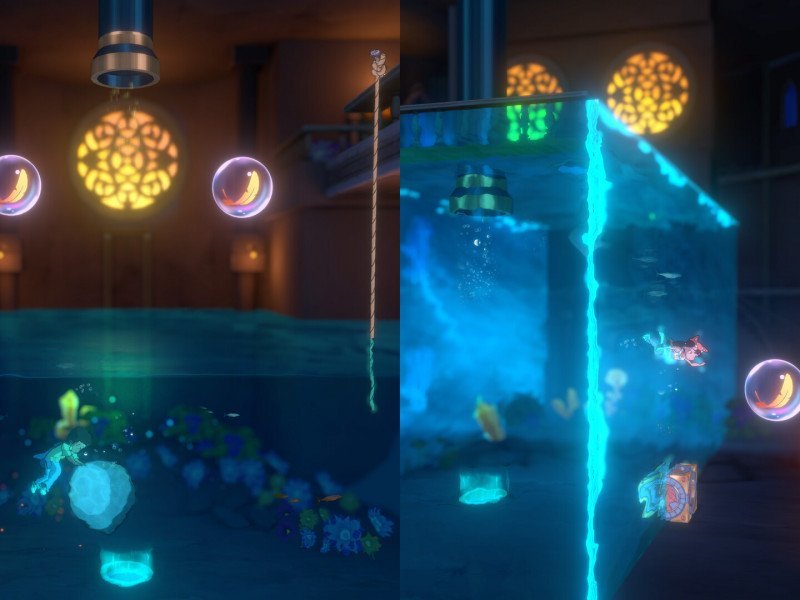 Les énigmes du jeu sont soigneusement conçues : elles ne paraissent jamais trop faciles, mais elles sont rarement frustrantes non plus. Chaque énigme introduit un nouveau concept et le développe progressivement. Par exemple, au départ, on ne fait glisser qu'une seule tuile, mais il faut ensuite tenir compte de la rotation, de la gravité et des interactions entre les personnages. Il est intéressant de noter que certaines énigmes sont émotionnelles, comme un niveau qui ne peut être résolu que si Abi et Ben s'attendent l'un l'autre ou font un sacrifice. Le gameplay est donc non seulement stimulant pour les méninges, mais aussi touchant. Il n'y a pas de système de missions traditionnel comme dans les RPG, mais chaque niveau a un objectif clair : réunir Abi et Ben à la fin. Certains niveaux incluent des objectifs secondaires, comme trouver des fragments de mémoire cachés qui débloquent des éléments supplémentaires de l'histoire. Cela offre une rejouabilité considérable aux joueurs qui souhaitent approfondir leur expérience. La progression est divisée en mondes thématiques, chacun doté d'une esthétique et de mécanismes uniques, des paysages oniriques flottants aux ruines de villes figées dans le temps. Le mode multijoueur de Lost Twins 2 est uniquement disponible en local (écran partagé), mais c'est là toute sa force. Jouer avec un ami ou un partenaire crée une dynamique de communication intense, car de nombreuses énigmes requièrent timing et compréhension des rôles. Il n'y a pas de compétition, seulement de la collaboration. C'est pourquoi Lost Twins 2 est un jeu idéal à jouer avec ses proches, non pas pour gagner, mais pour comprendre et tisser des liens.