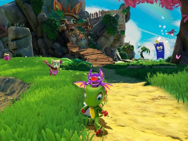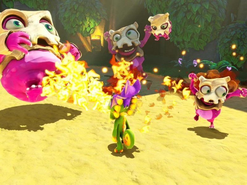 L'une des principales exigences de tout jeu remasterisé est une refonte visuelle, améliorant significativement l'original. Playtonic Games a entièrement repensé les graphismes, rendant l'univers beaucoup plus vivant, du mouvement de l'herbe ondulante à un éclairage plus naturel, en passant par une interface intuitive. De plus, le design des personnages a été peaufiné pour atteindre un niveau de détail bien plus élevé, même si le moteur utilisé est toujours le même (à savoir Unity). La progression comporte encore des défauts de design évidents avec la présence de murs invisibles vous bloquant le passage, ou parfois des endroits à peine visibles à l'écran. De quoi rendre l'exploration un brin frustrante, malgré le fait que la gestion de la caméra apparaisse plus fluide que dans l'original. La prise en main apparaît pour sa part très classique et certains joueurs se diront que le gameplay a terriblement vieilli depuis Banjo Tooie (paru en 2000). Yooka peut avaler des boules qui lui confèrent des pouvoirs temporaires (lancer de l'eau, jeter de la glace ou encore cracher du feu). Le bémol est que cette magie est vraiment très limitée, et pourtant elle sera nécessaire pour compléter certains défis. L'un des aspects les plus marquants de cette version remasterisée est sa bande-son signée David Wise (Donkey Kong Country) magnifiquement interprétée par l'Orchestre Philharmonique de Prague. La conception sonore ajoute du charme à l'univers et le rend plus vivant. C'est un point positif, car les jeux de plateforme ont besoin d'une bonne musique pour créer une atmosphère joyeuse. Cependant, certains effets sonores paraissent parfois désuets, souvent éclipsés par la grandeur de la musique.