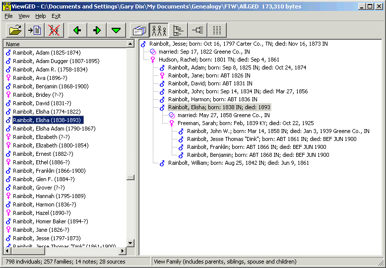 This program is useful for viewing genealogy files in the GEDCOM (.ged) format; list, family, ancestor, descendant and detail views are available. ViewGED can also be used to export a person list and remove living or other persons from a .ged file.