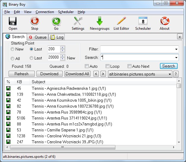 A Usenet newsreader with scheduler, threaded decoder, picture viewer, NZB and RAR support.. Automatically download using NZB files or browse newsgroups and select files manually. Easily download and automatically expand RAR files with 2 clicks. Launch external programs based on the downloaded filename. Automatically re-establishes broken connections. Browse pictures with the built-in viewer and delete unwanted images without leaving the program. Keep your files organized by creating a folder for each newsgroup. The folder can automatically use the name of the newsgroup or you can manually assign each a name. Send related files, such as music from the same artist, to the same folder. The built-in scheduler downloads files matching your search criteria and disconnects automatically after an optional time limit. Compatible with any standard news server.